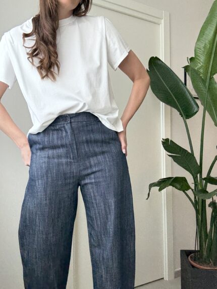 Sudėtis: 100% medvilnė Išmatavimai: S: liemuo 72 cm, klubai iki 94 cm, ilgis: 98 / 67 cm; M: liemuo 74 cm, klubai iki 106 cm, ilgis: 101 / 69 cm; L: liemuo 80 cm, klubai iki 114 cm, ilgis: 103 / 72 cm; Pagaminta: Italijoje