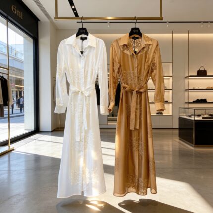 Sudėtis: T: 85% lyocelio 15% poliesterio T2: 95% viskozės 5% elastano: Išmatavimai: S: krūtinė iki 94 cm, liemuo ir klubai iki 106 cm, bendras ilgis: 142 cm; M: krūtinė iki 98 cm, liemuo ir klubai iki 108 cm, bendras ilgis: 143 cm; L: krūtinė iki 100 cm, liemuo ir klubai iki 110 cm, bendras ilgis: 144 cm; XL: krūtinė iki 114 cm, liemuo ir klubai iki 116 cm, bendras ilgis: 145 cm; Pagaminta: Italijoje