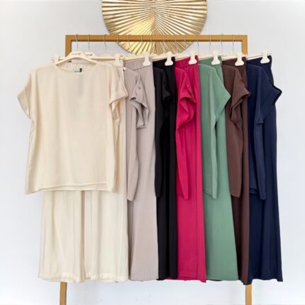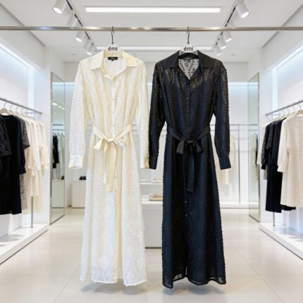 Sudėtis: T1: 85% lyoncelio 15% poliamido, T2: 96% viskozės 5% elastano. Išmatavimai: S: krūtinė iki 100 cm, liemuo iki 84 cm, klubai iki 102 cm, bendras ilgis: 140 cm; M: krūtinė iki 112 cm, liemuo iki 90 cm, klubai iki 112 cm, bendras ilgis: 142 cm; L: krūtinė iki 114 cm, liemuo iki 96 cm, klubai iki 118 cm, bendras ilgis: 143 cm; XL: krūtinė iki 118 cm, liemuo iki 100 cm, klubai iki 124 cm, bendras ilgis: 144 cm;