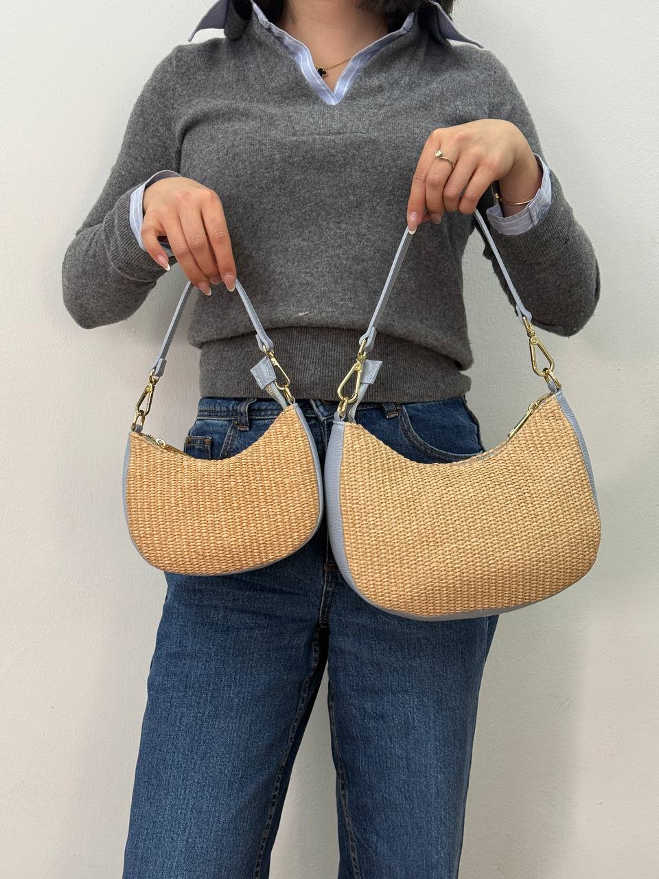 Sudėtis: šiaudo rankinė kombinuota su natūralia grublėta oda