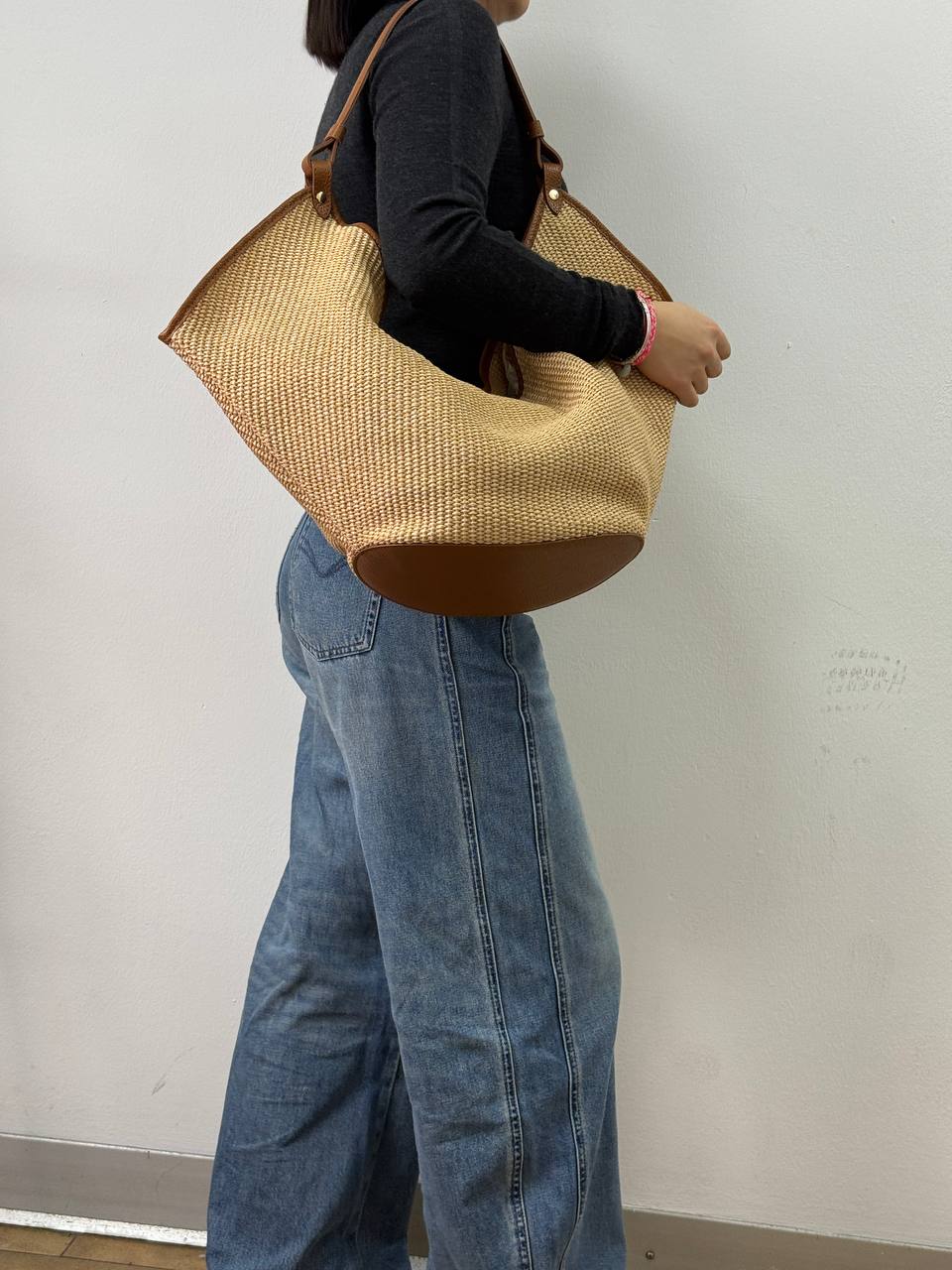 Sudėtis: šiaudo rankinė kombinuota su natūralia grublėta oda